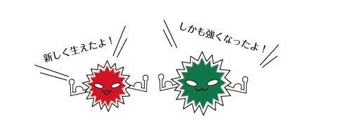 実は、カビは生きていくために進化をし、同じ薬剤に対して耐性を持ってしまいます。薬剤に慣れてしまい、だんだん効かなくなるのです。強くなったカビに占拠される前になんとかしなくてはいけません。